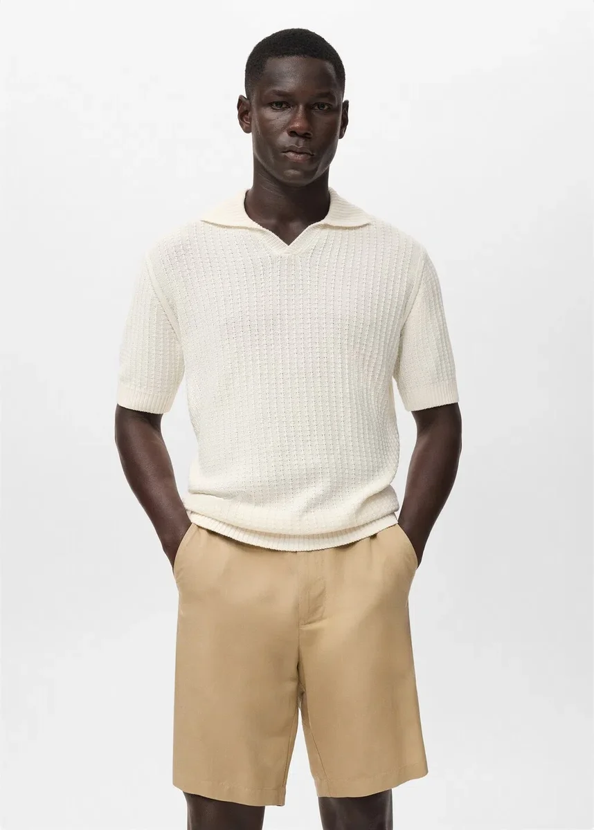 100% bawełna. Prosty krój. Kołnierzyk polo. Gruba dzianina. Ażurowe wykończenie. Krótkie rękawy. Prążkowany kołnierzyk, rękawy i dół. Produkt promocyjny
