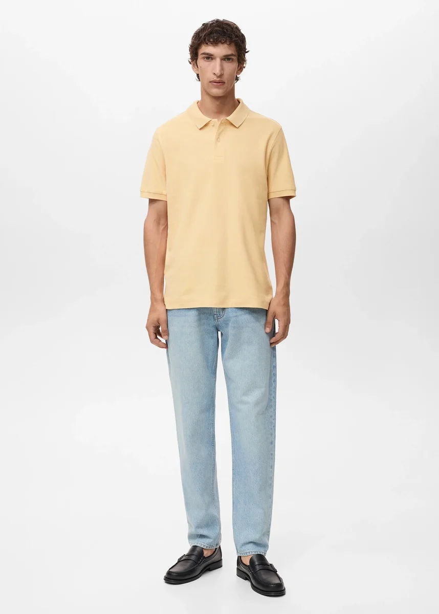 Regularny krój. 100% bawełna. Tkanina piqué. Kołnierzyk polo. Zapięcie na guziki. Krótkie rękawy z prążkowanymi wykończeniami. Prosty dół z bocznymi rozcięciami. Krótkie rękawy z prążkowanymi mankietami.