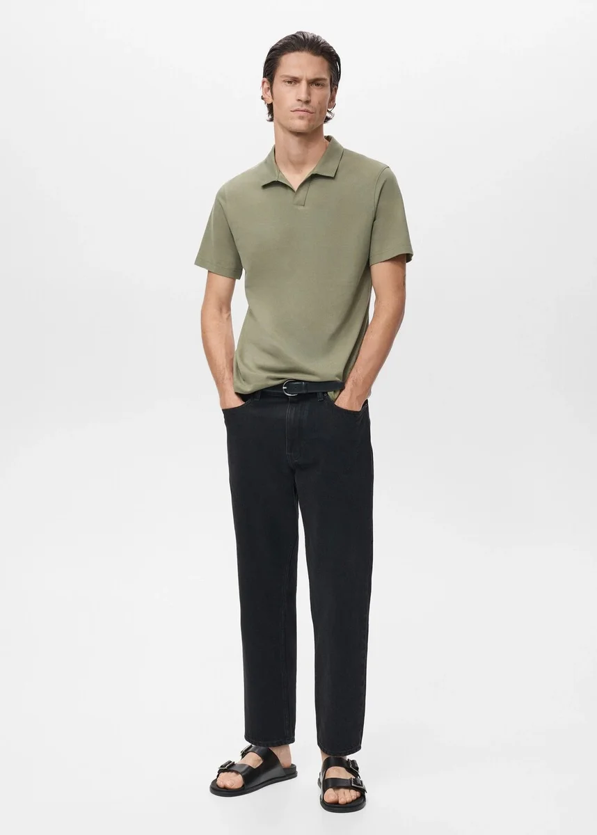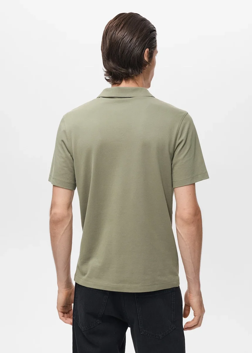 Krój slim fit. Tkanina z mieszanki bawełny. Koszulka polo z kołnierzem bez guzików. Krótkie rękawy. Prosty dół.