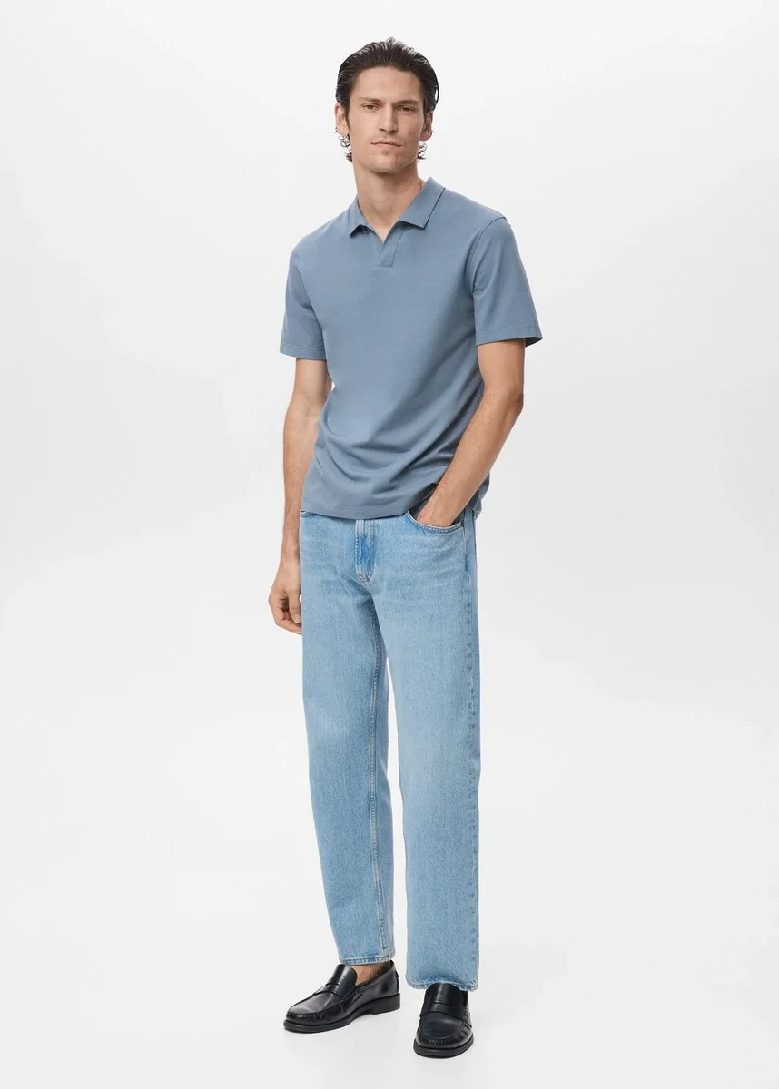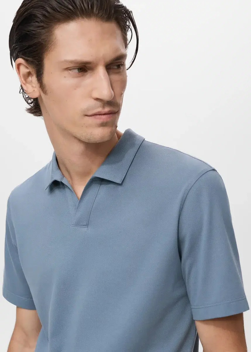 Krój slim fit. Tkanina z mieszanki bawełny. Koszulka polo z kołnierzem bez guzików. Krótkie rękawy. Prosty dół.