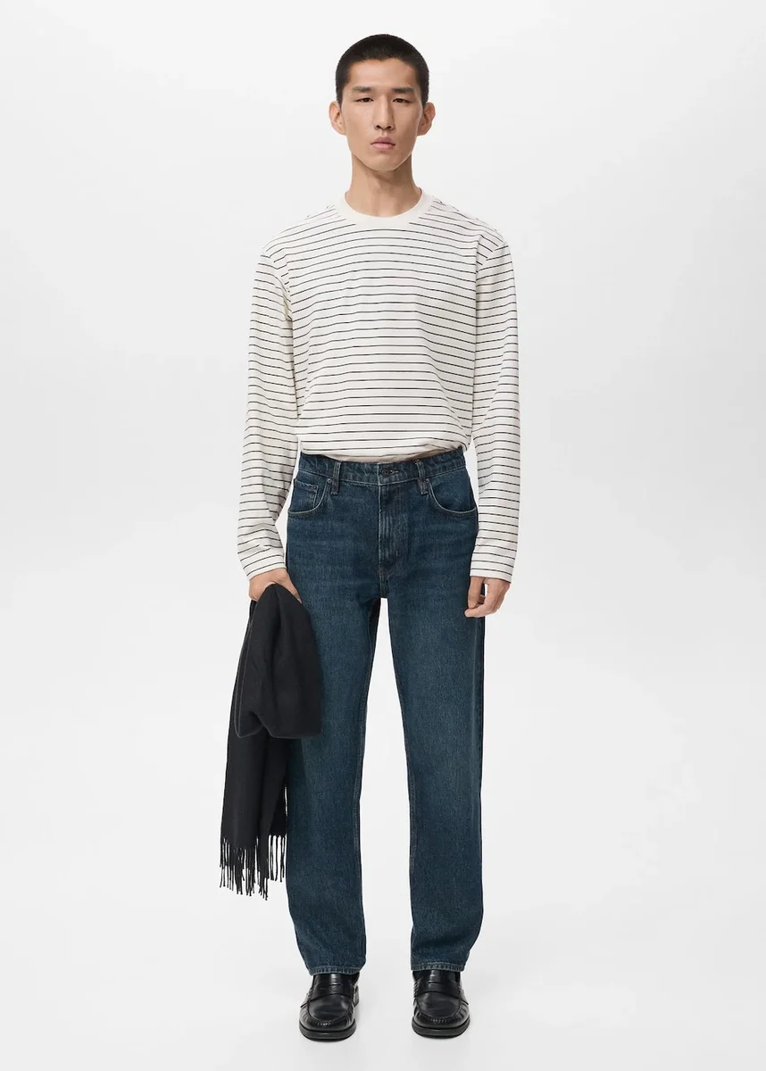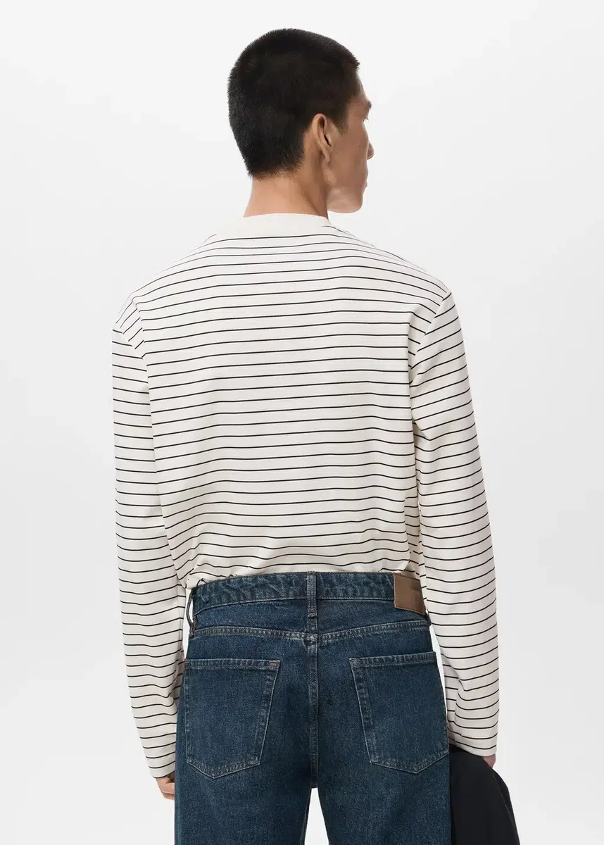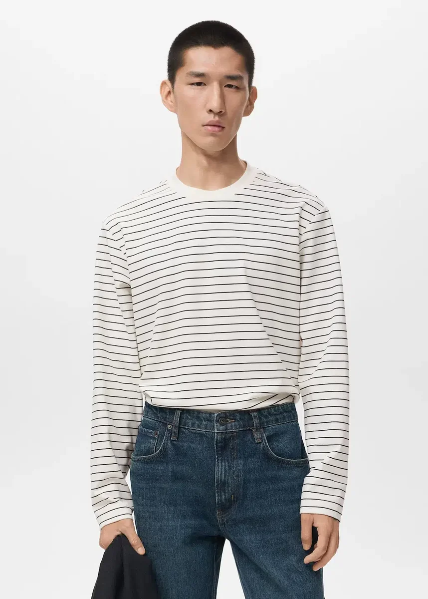 Regularny krój. Wzór w paski. Okrągły dekolt z prążkowanym wykończeniem. Długie rękawy. Prosty dół. ESSENTIALS: Stworzone, by przetrwać. Wzmocniliśmy nasze standardy jakości, dodając nowe testy wytrzymałościowe do naszych ubrań. Zaprojektowane z dbałością o szczegóły konstrukcyjne, są jeszcze bardziej trwałe, wszechstronne i ponadczasowe.