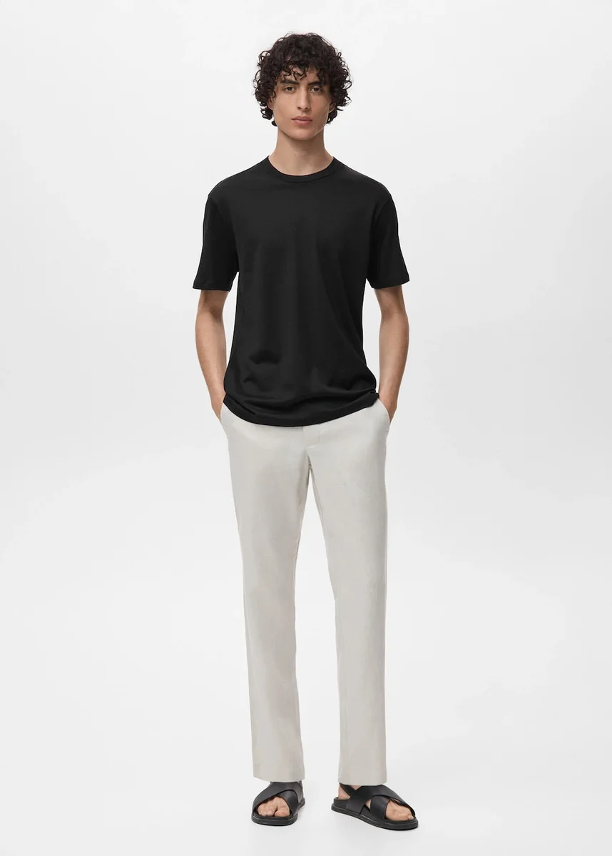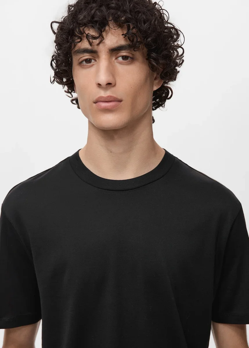 Regularny krój. 100% merceryzowana bawełna. Okrągły dekolt. Krótki rękaw. Prosty dół.