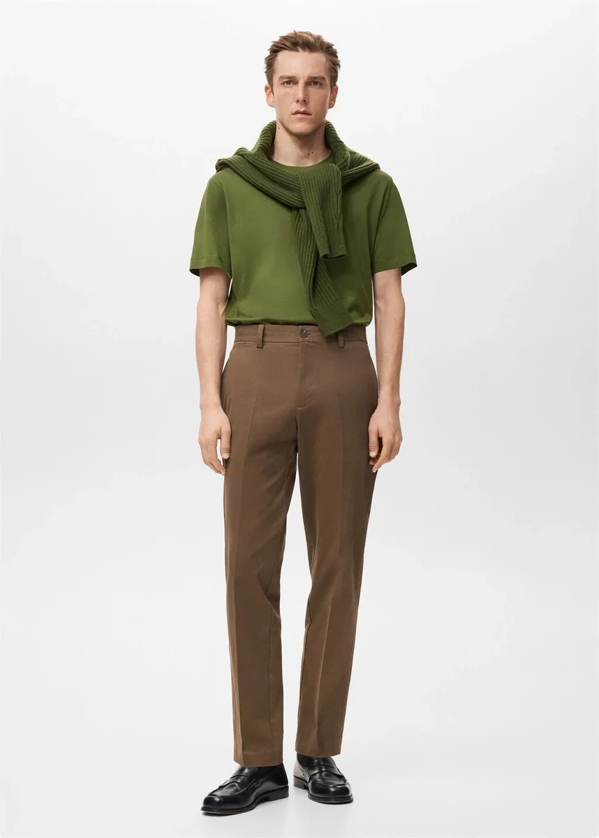 Regularny krój. 100% merceryzowana bawełna. Okrągły dekolt. Krótkie rękawy. Prosty dół.