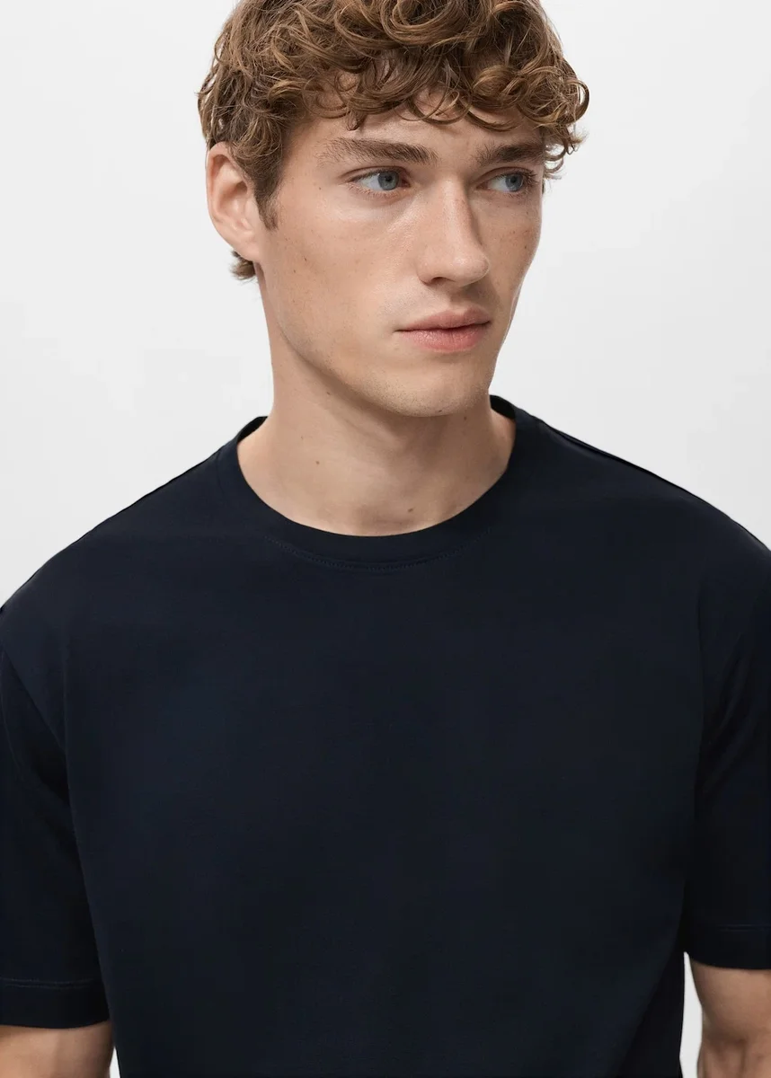 Regularny krój. 100% merceryzowana bawełna. Okrągły dekolt. Krótkie rękawy. Prosty dół.