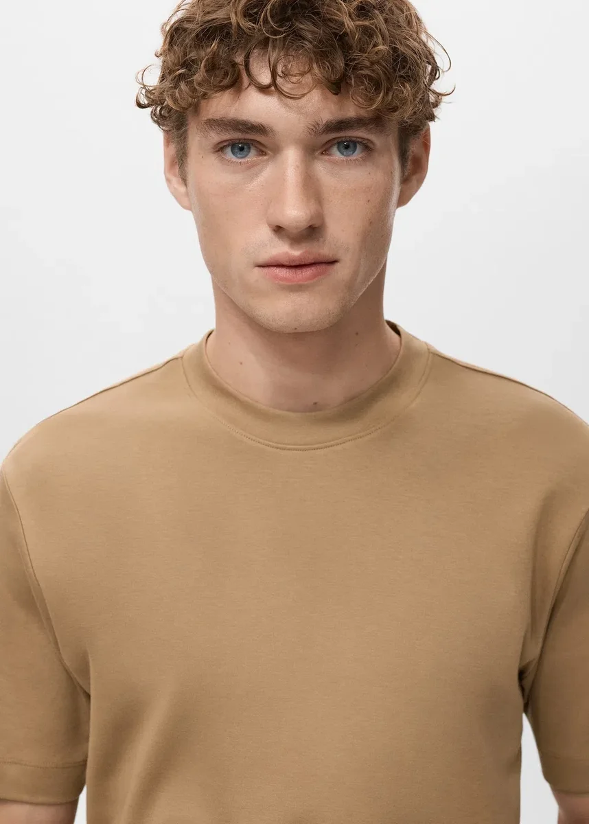 100% bawełna. Średnia gramatura. Regularny krój. Okrągły dekolt. Krótki rękaw. Prosty dół.