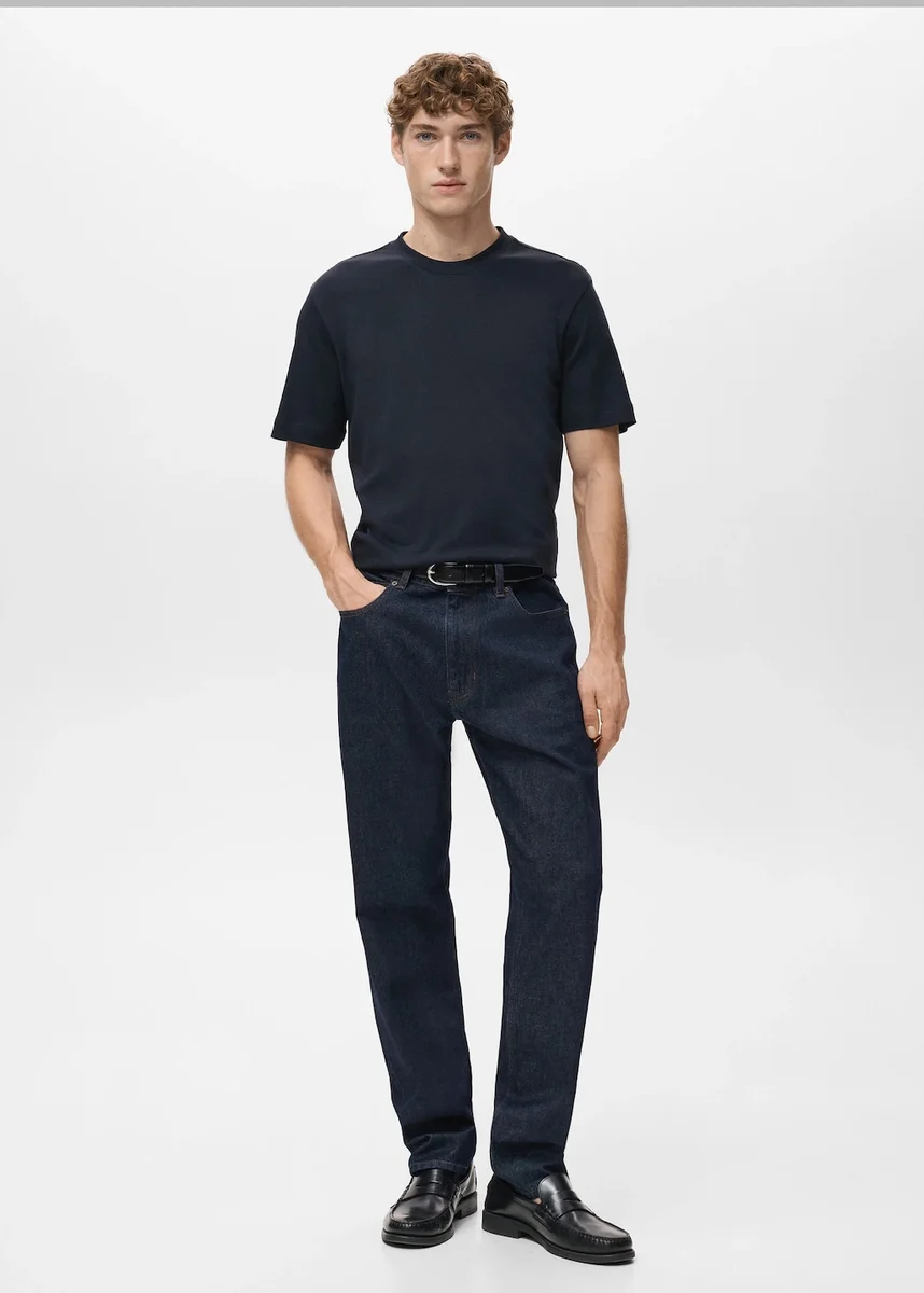 100% bawełna. Średnia gramatura. Regularny krój. Okrągły dekolt. Krótkie rękawy. Prosty dół