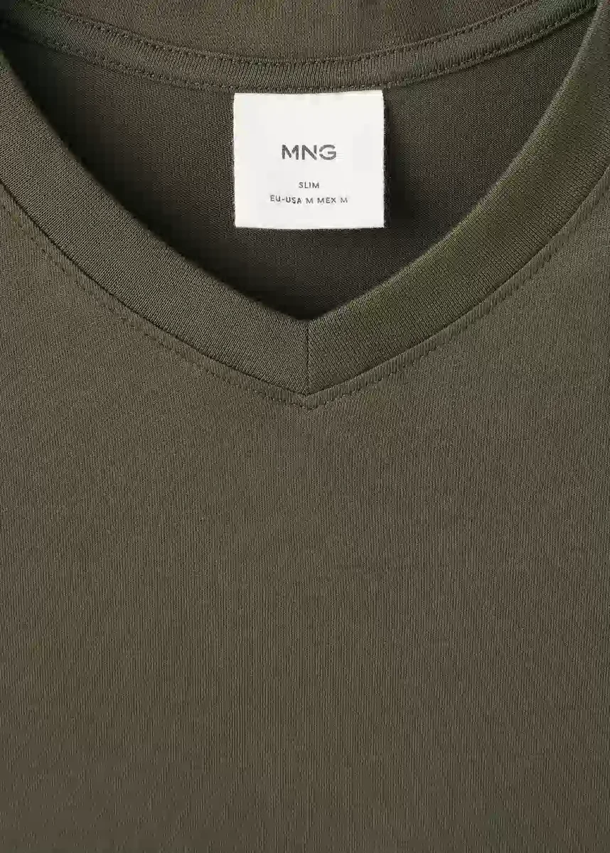 Koszulka z dekoltem w serek, 100% bawełna, dopasowany krój