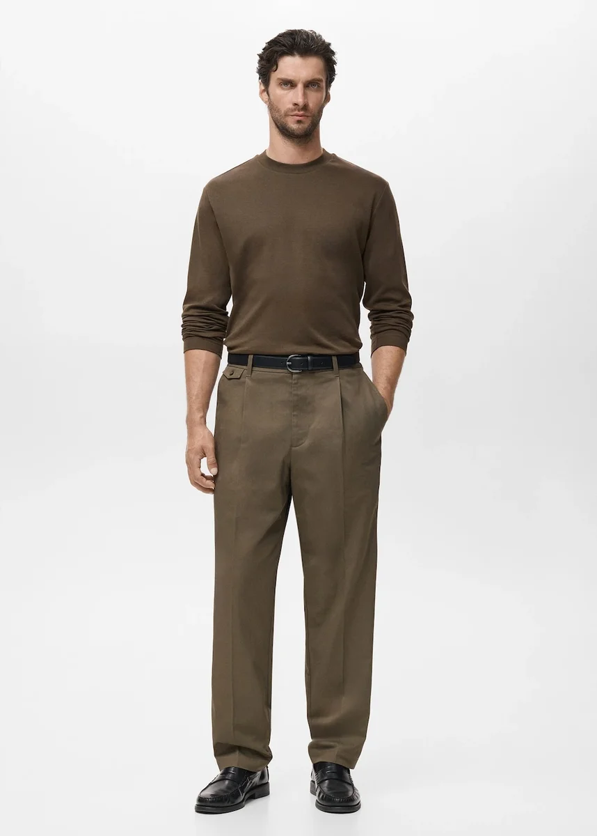 Regularny krój. 100% bawełna. Lekka tkanina. Okrągły dekolt. Długi rękaw. Prosty dół.
