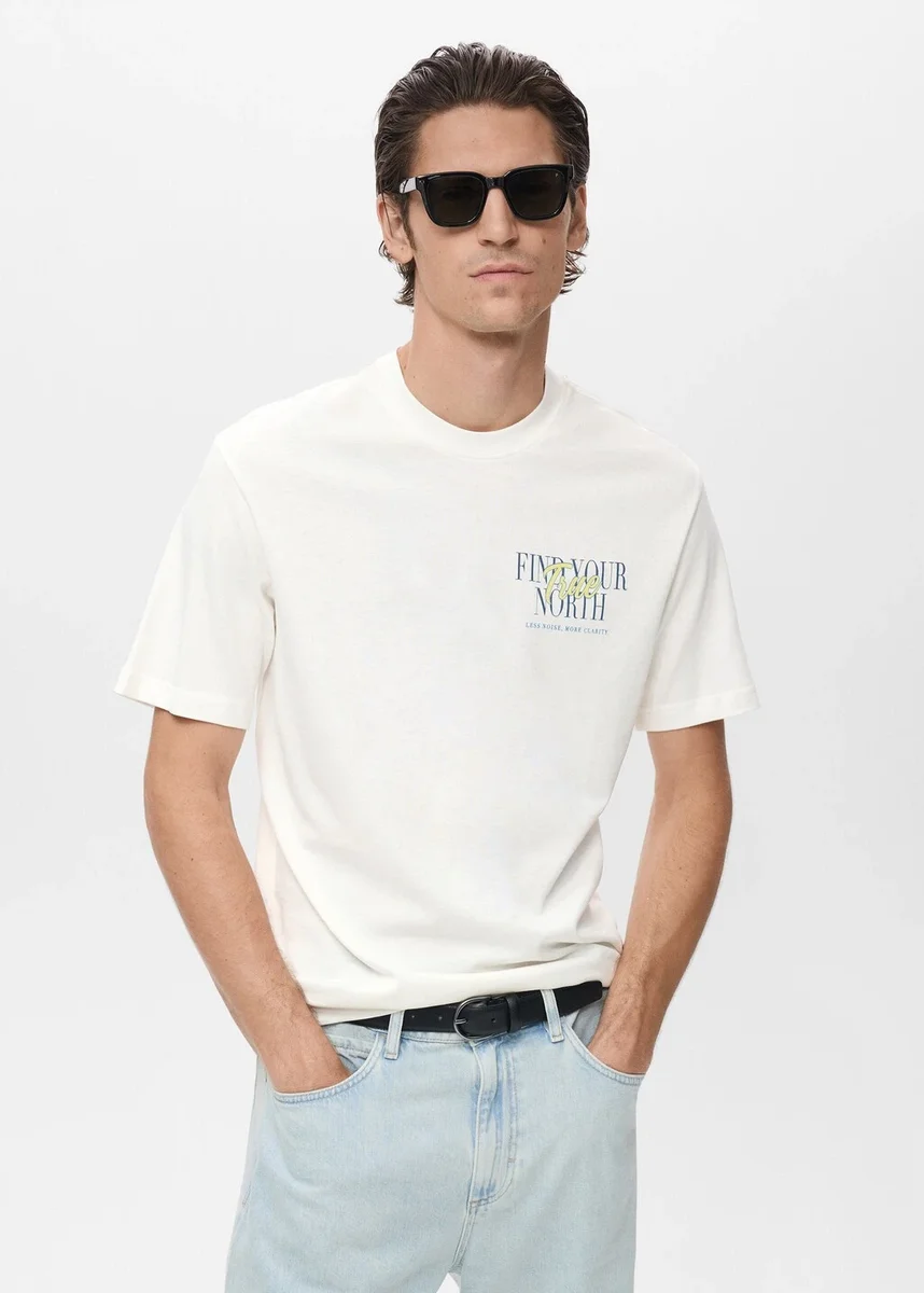 100% bawełna. Regularny krój. Okrągły dekolt. Krótkie rękawy. Nadruk na piersi.