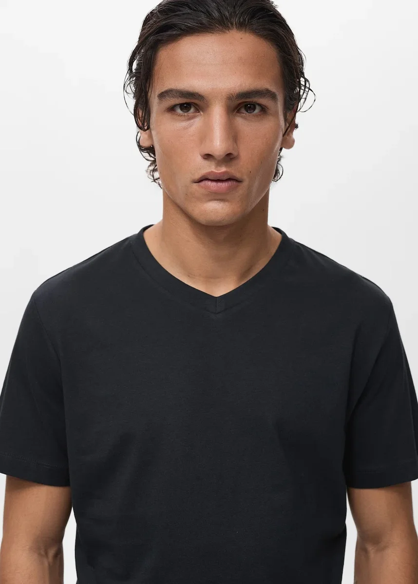100% bawełna. Dopasowany krój. Dekolt w szpic. Krótki rękaw. Prosty dół. Modele w kolorze średniobrązowym i zielonym są dostępne wyłącznie w sprzedaży internetowej. Modele w kolorze średniobrązowym i indygo są dostępne wyłącznie w sprzedaży internetowej. Krótkie rękawy. Modele w kolorze piaskowym i szkarłatnym są dostępne wyłącznie w sprzedaży internetowej.