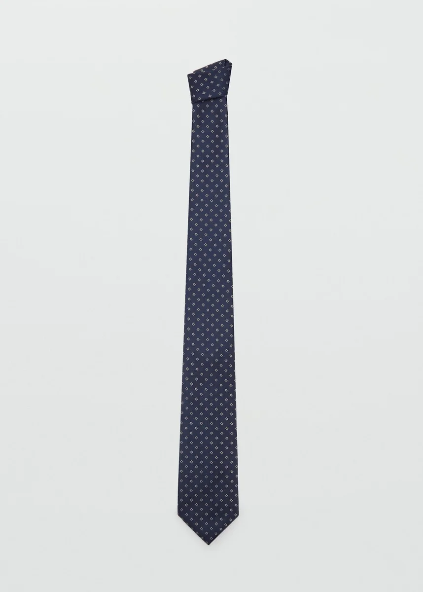 Mieszanka jedwabiu. Szerokość 8 cm. Geometryczne wykończenie.