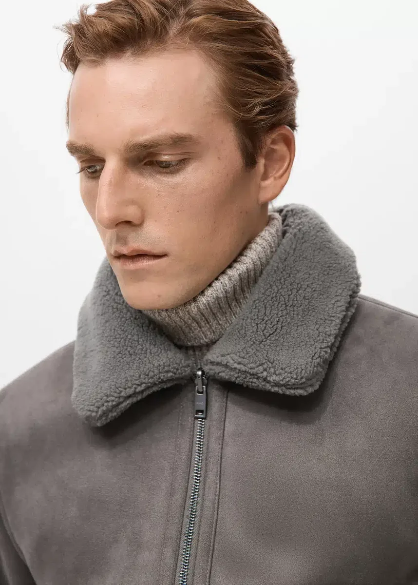 Regularny krój. Dwustronny design. Sztuczna zamszowa skóra. Wnętrze ze sztucznej owczej skóry. Dwie kieszenie boczne. Kołnierz ze sztucznej owczej skóry. Długie rękawy. Zapięcie na zamek błyskawiczny z przodu