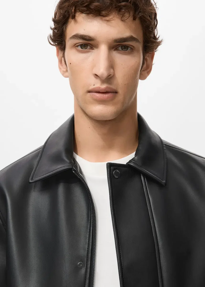 Tkanina ze sztucznej skóry. Prosty krój. Dwie przednie kieszenie. Zapięcie na zamek błyskawiczny i guzik. Długie rękawy. Ściągacze