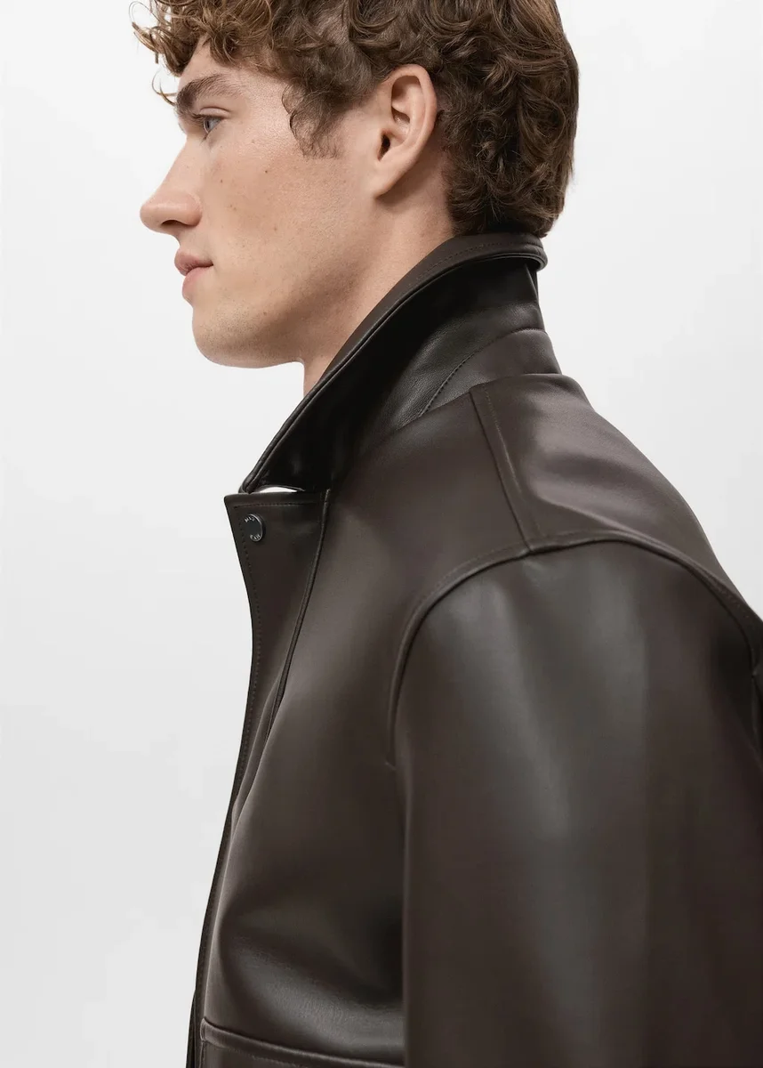 Tkanina ze sztucznej skóry. Prosty krój. Dwie kieszenie z przodu. Zapięcie na zamek błyskawiczny i guziki. Długie rękawy. Ściągacze.