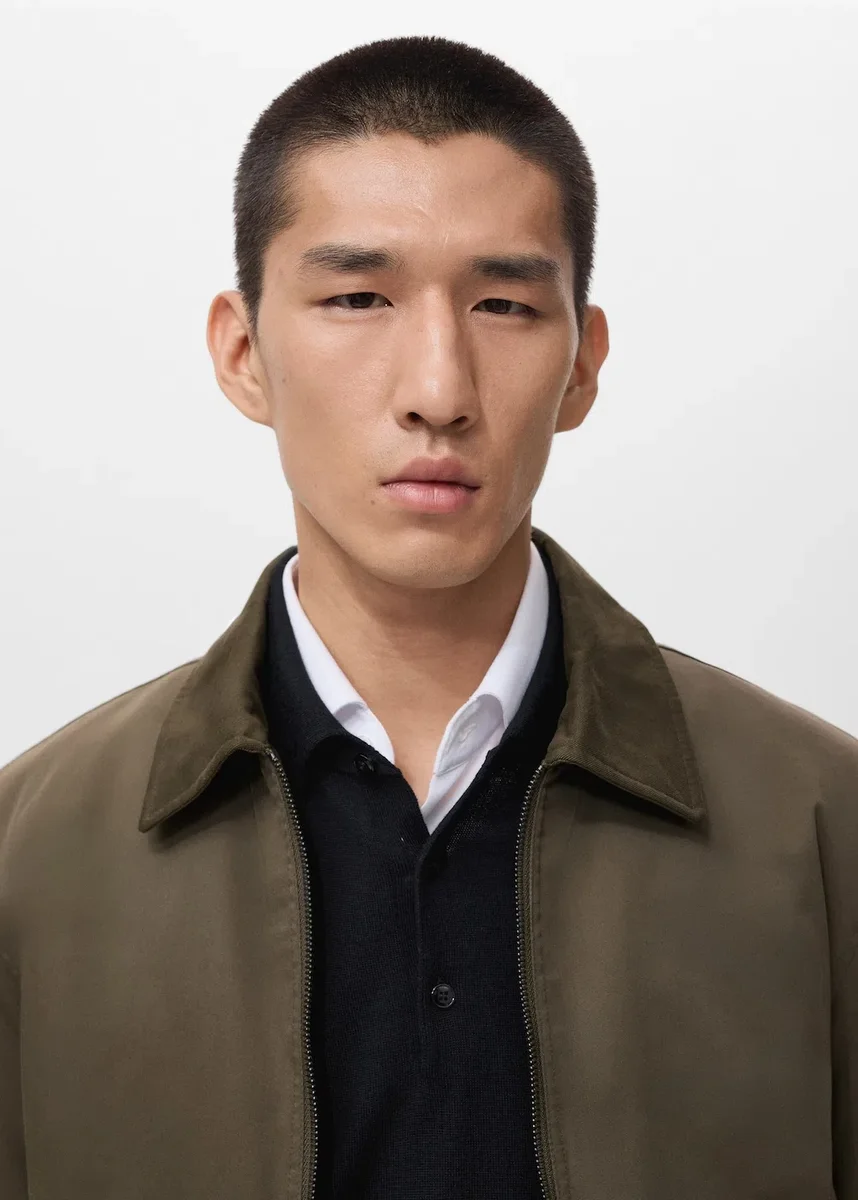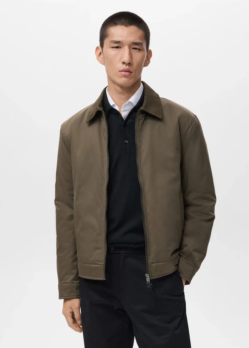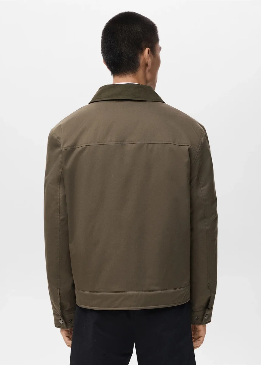 Wodoodporność: Techniczna tkanina wodoodporna. Kolor khaki dostępny wyłącznie w sprzedaży internetowej. Tkanina z mieszanki bawełny. Prosty krój. Kołnierzyk koszulowy. Kieszenie boczne. Kieszeń wewnętrzna. Pikowana podszewka. Długie rękawy z mankietami zapinanymi na guziki. Zapięcie na zamek błyskawiczny z przodu.