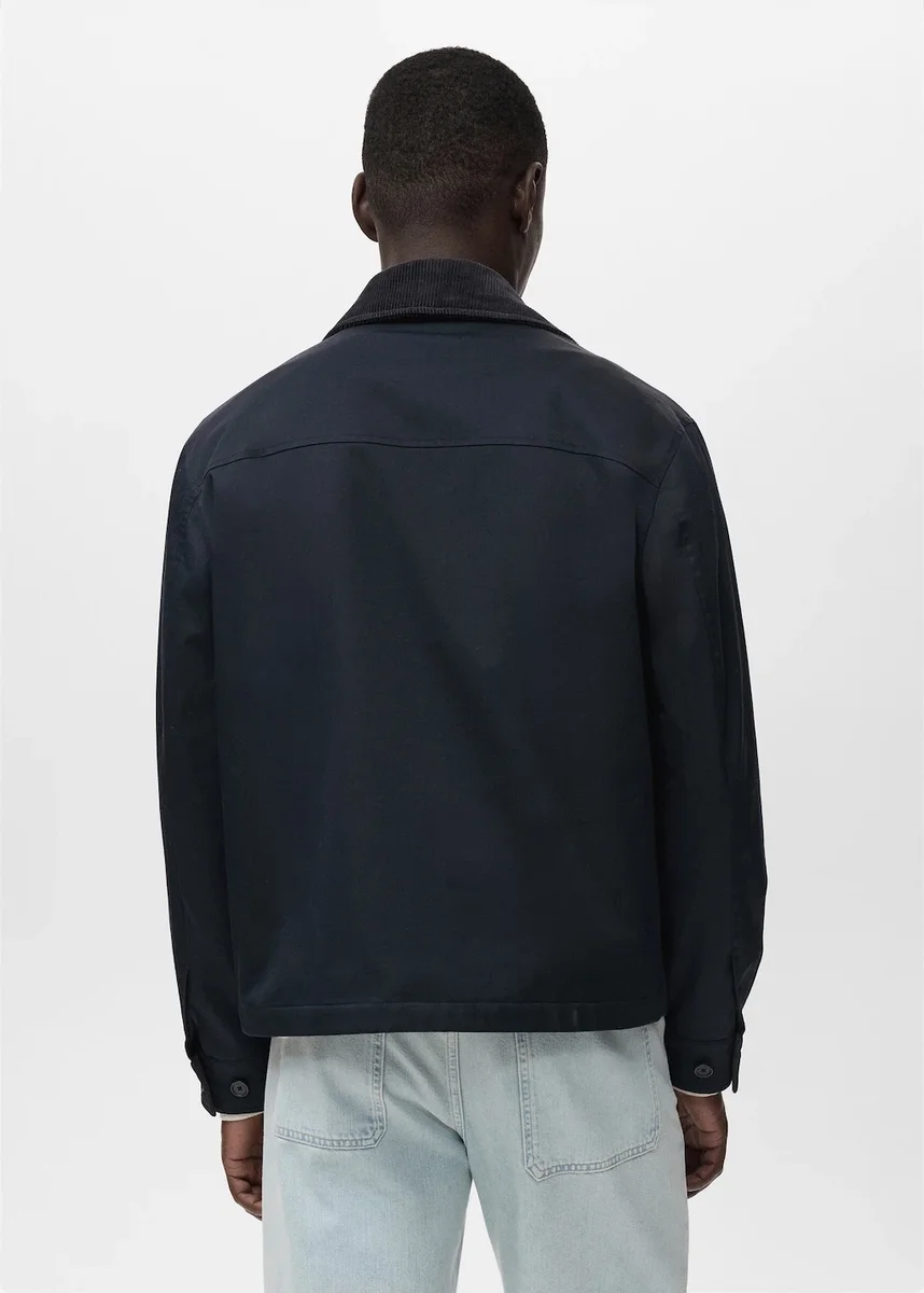 Kolekcja Casper Ruud x Mango. Tkanina z mieszanki bawełny i lnu. Kołnierzyk koszulowy z sztruksu. Dwie boczne kieszenie z klapkami. Z podszewką wewnętrzną. Kieszeń wewnętrzna. Długie rękawy z mankietami zapinanymi na guziki. Zapięcie z przodu na zamek błyskawiczny i guziki. Wodoodporność: trwałe wykończenie tej odzieży chroni przed lekkim deszczem, odpychając wodę i krople deszczu. ESSENTIALS: Stworzone, by przetrwać. Wzmocniliśmy nasze standardy jakości, wprowadzając nowe testy wytrzymałościowe dla naszych ubrań. Zaprojektowane z dbałością o szczegóły konstrukcyjne, są jeszcze bardziej trwałe, uniwersalne i ponadczasowe.