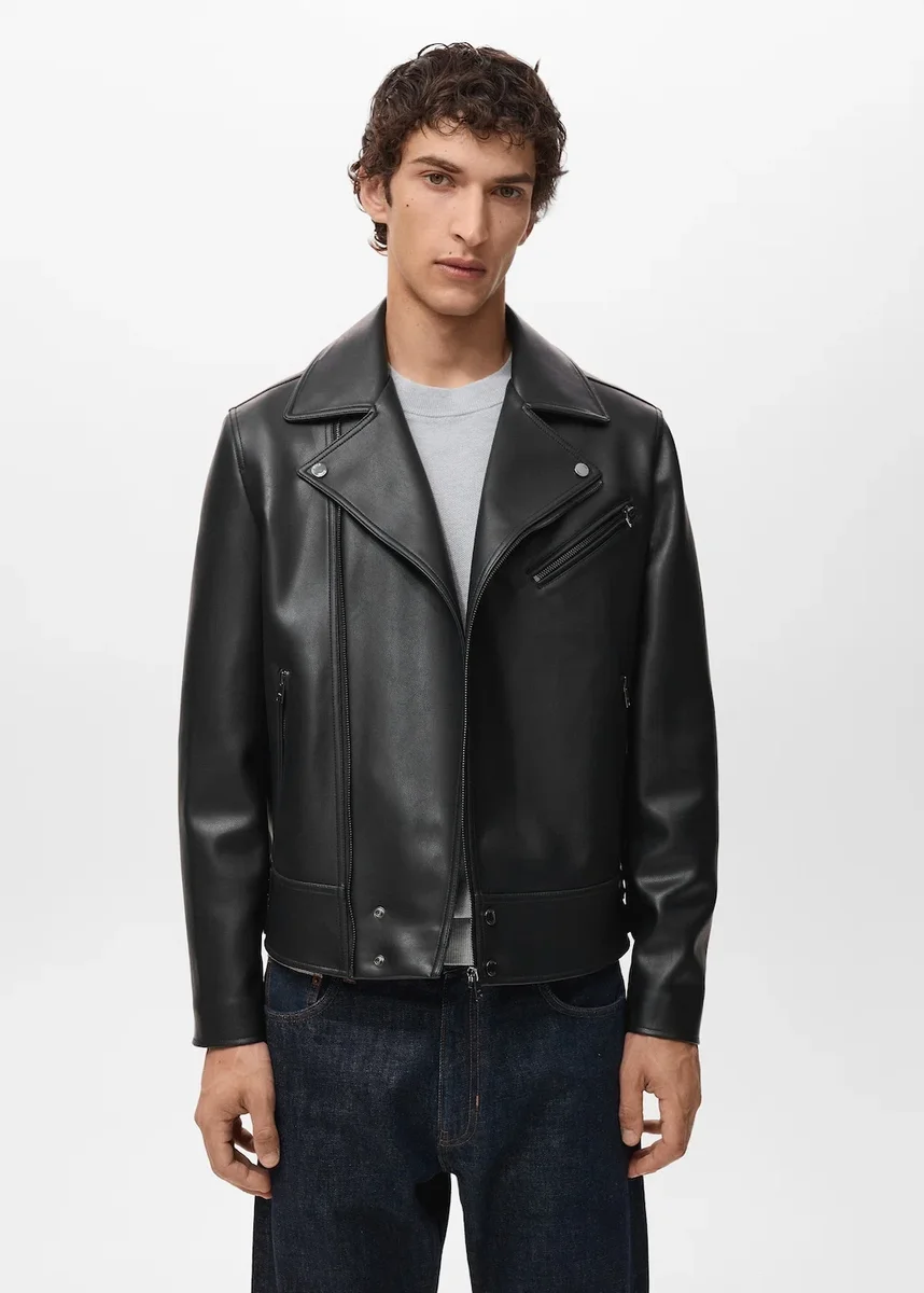 Krój slim fit. Efekt skóry. Kołnierz z wycięciem. Styl motocyklowy. Długie rękawy z zamkiem błyskawicznym przy mankietach. Asymetryczne zapięcie na zamek błyskawiczny. Trzy kieszenie zapinane na zamek błyskawiczny. Kieszeń wewnętrzna. Podszewka wewnętrzna. Regulowany dół za pomocą guzika.
