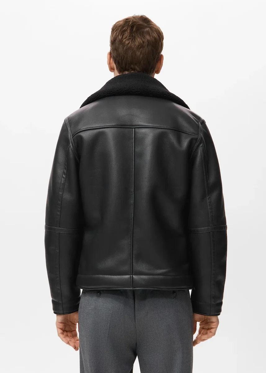 Kolekcja imprezowa. Prosty krój. Efekt skóry. Kołnierz z imitacji owczej skóry. Regulowany pasek na szyi. Wnętrze z imitacji owczej skóry. Dwie kieszenie boczne. Długi rękaw.