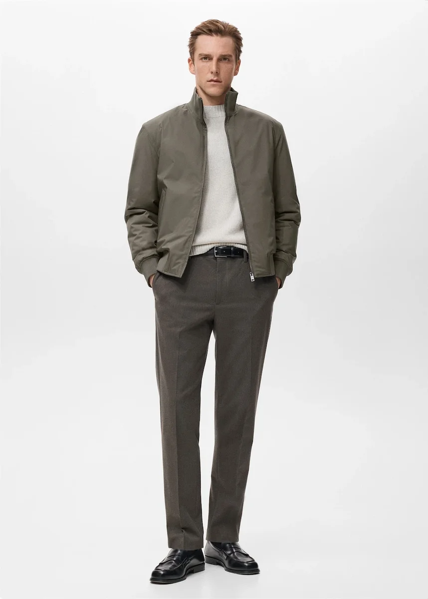 Wodoodporność: Techniczna tkanina wodoodporna. Krój bomberki. Kołnierz lejkowaty. Pikowana podszewka wewnętrzna. Dwie kieszenie boczne. Kieszeń wewnętrzna z wypustką. Ściągacz przy kołnierzu, mankietach i u dołu. Zapięcie na zamek błyskawiczny z przodu