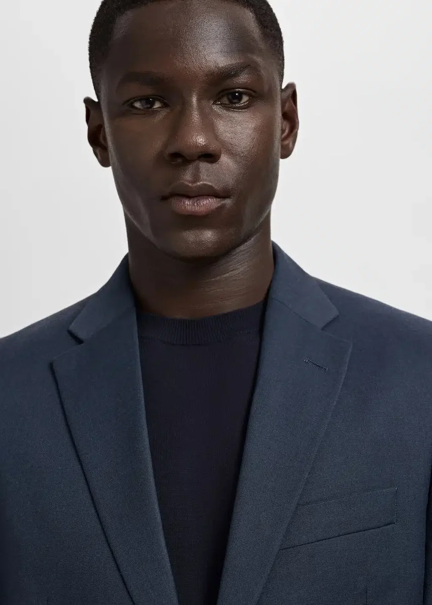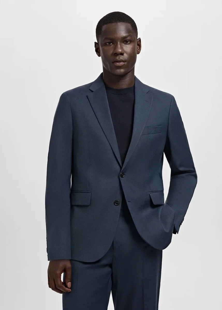 Regularny krój. Klapy z wycięciem. Zapięcie na guziki z przodu. Kieszeń na piersi. Dwie kieszenie z klapką z przodu. Zapięcie na guziki przy mankietach. Dwa rozcięcia z tyłu. Kieszeń wewnętrzna.