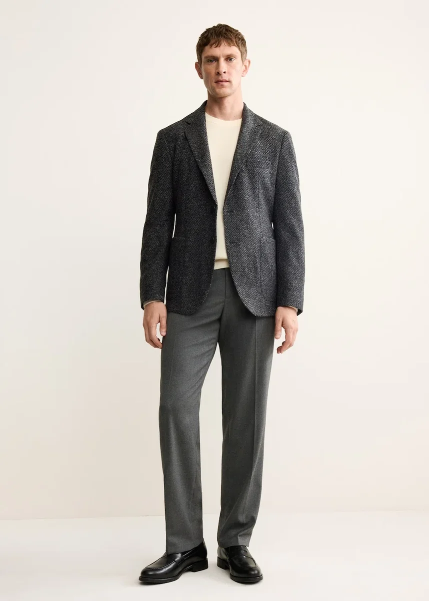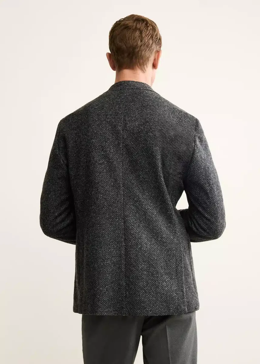 Krój slim fit. Tkanina z włoskiej wełny. Klapy z wycięciem. Zapięcie na dwa guziki. Kieszeń na piersi. Dwie naszywane kieszenie z przodu. Długie rękawy z mankietami zapinanymi na guziki. Kieszenie wewnętrzne.
