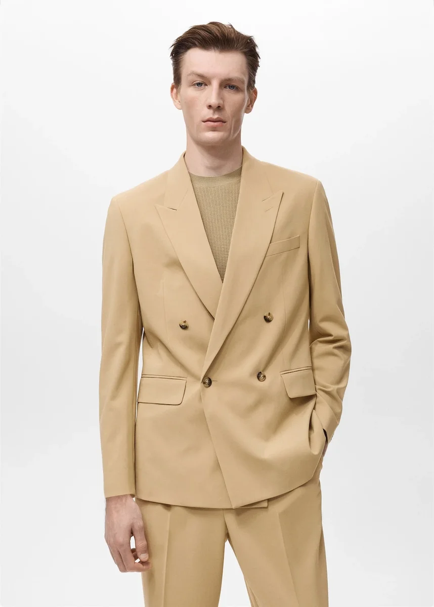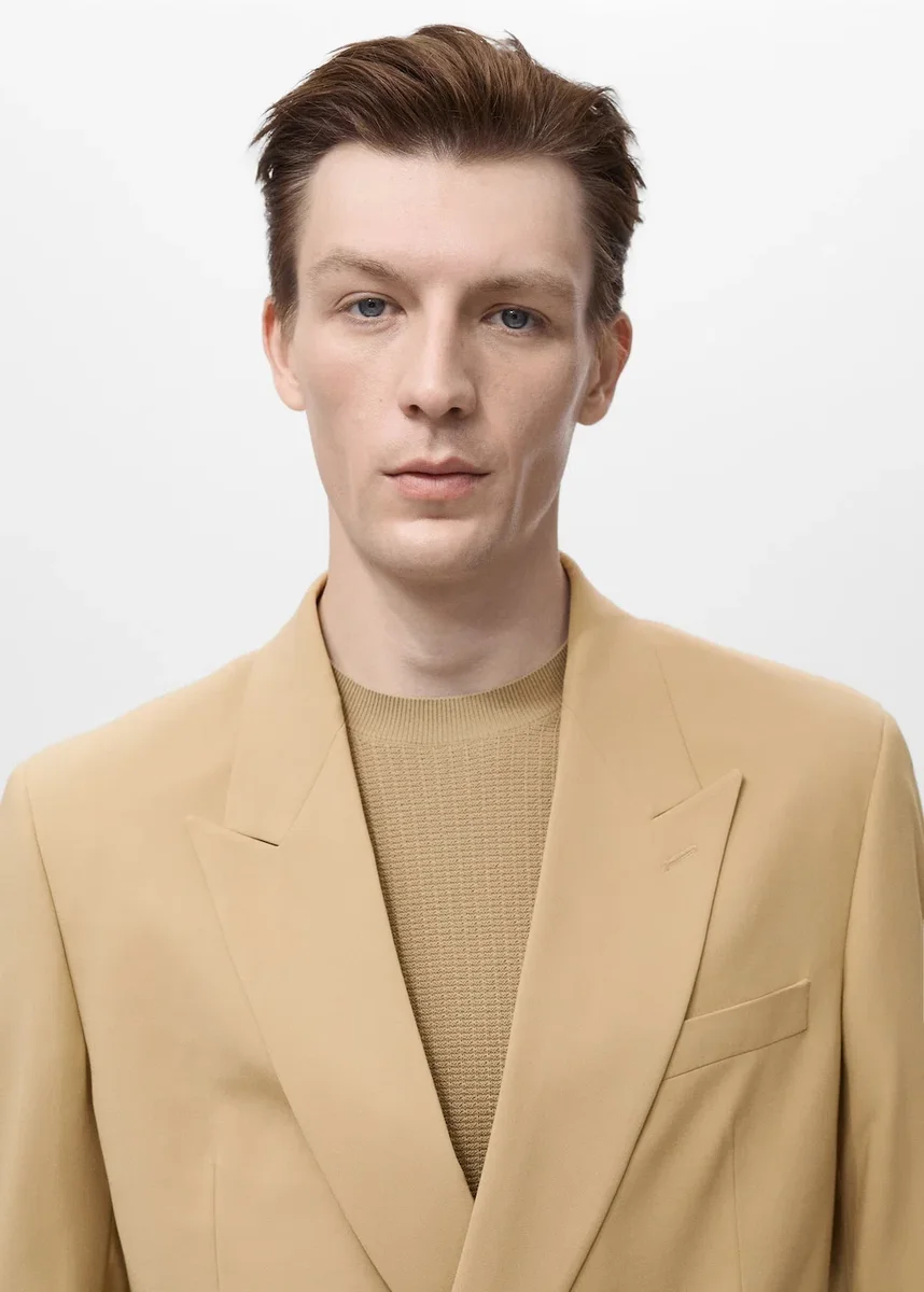 Kolekcja szyta na miarę. Regularny krój. Kopertowy krój. Klapy z wycięciem i dziurką na guzik. Zapięcie na guziki z przodu. Kieszeń z wypustką na piersi. Dwie kieszenie z klapkami z przodu. Podwójne rozcięcie z tyłu. Podszewka wewnętrzna. Kieszeń wewnętrzna. Mankiety zapinane na guziki. Czarny piątek.