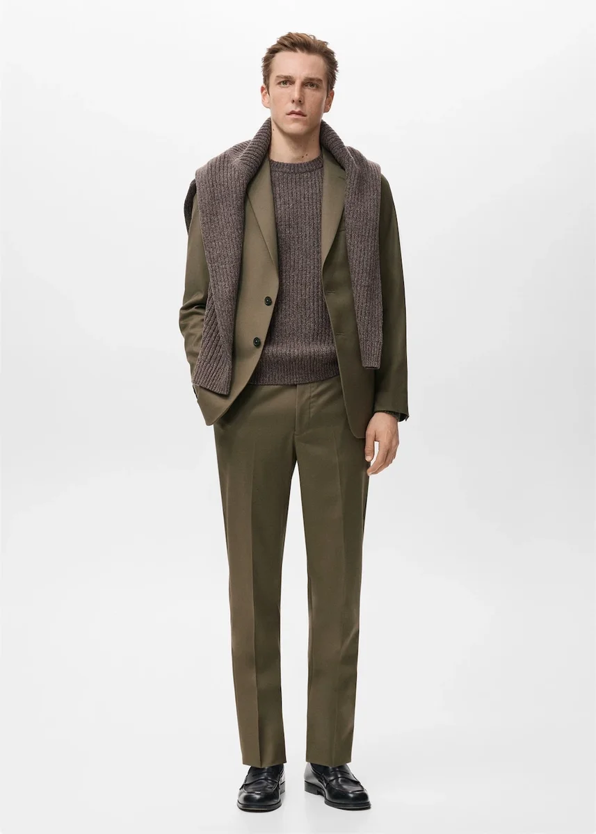 Krój slim fit. 100% dziewicza wełna. Kieszeń na piersi. Dwie kieszenie boczne. Dwa rozcięcia z tyłu. Podszewka wewnętrzna.