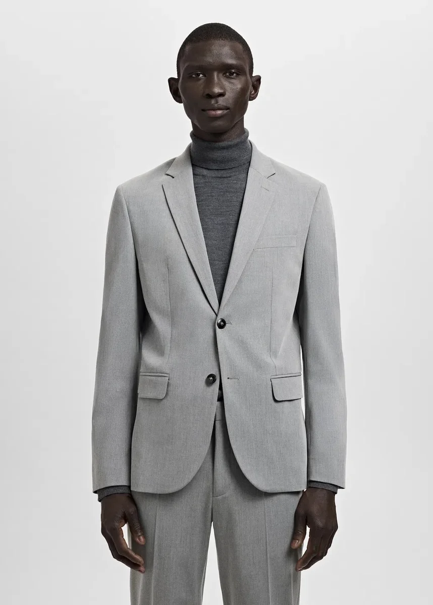 Sylwetka Super Slim Fit. Standardowa długość. Długie rękawy. Lekka, płaska struktura. Zapięcie z przodu. Kołnierzyk Regular. Wyściółka tylko podszewka. Klapy z wycięciem i dziurka na guzik. Zapięcie na guziki z przodu. Jedna kieszeń z wypustką na piersi. Dwie kieszenie z klapką z przodu. Mankiety zapinane na guziki. Dół z dwoma rozcięciami po bokach. Kieszeń wewnętrzna. Podszewka wewnętrzna. Super slim fit. Comfort Stretch: Elastyczny materiał zapewniający dodatkowy komfort. Elastyczny materiał, który pochłania i eliminuje wilgoć, utrzymując ciało w suchości. Zapięcie na dwa guziki z przodu. Kieszeń z wypustką na piersi. Dwie kieszenie z wypustką i klapką z przodu. Długie rękawy z mankietami zapinanymi na guziki. Podwójne rozcięcie z tyłu. Podwójny rozcięcie z tyłu u dołu. Podszewka wewnętrzna. Kieszenie wewnętrzne. Kolekcja krawiecka. Komfort: Elastyczny materiał w poziomie i w pionie dla dodatkowego komfortu. 66% poliester, 28% wiskoza, 6% elastan