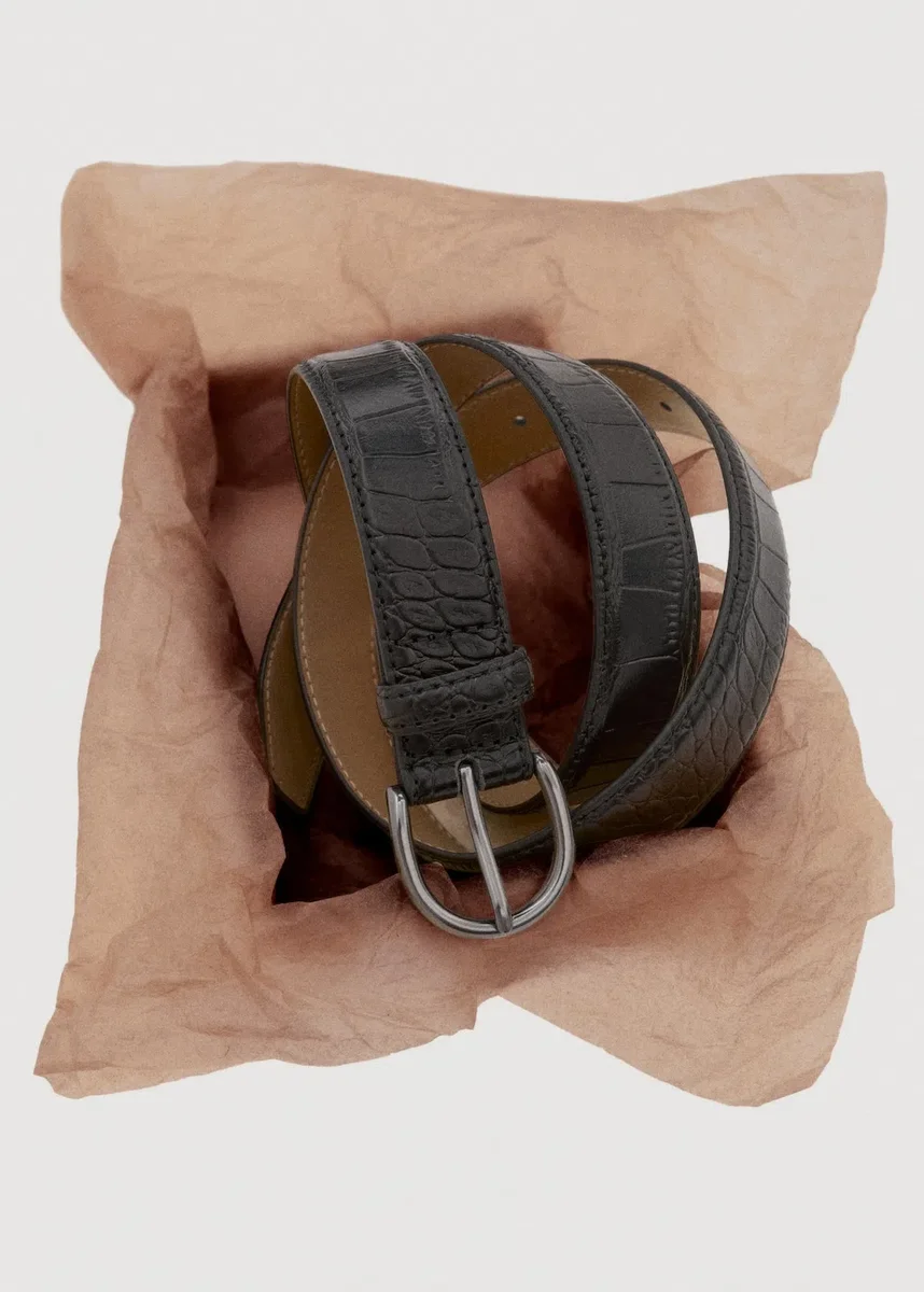 Kolekcja imprezowa. 100% skóra bydlęca. Zapięcie z okrągłą klamrą. Perforacja umożliwiająca swobodną regulację rozmiaru w sklepach MANGO.