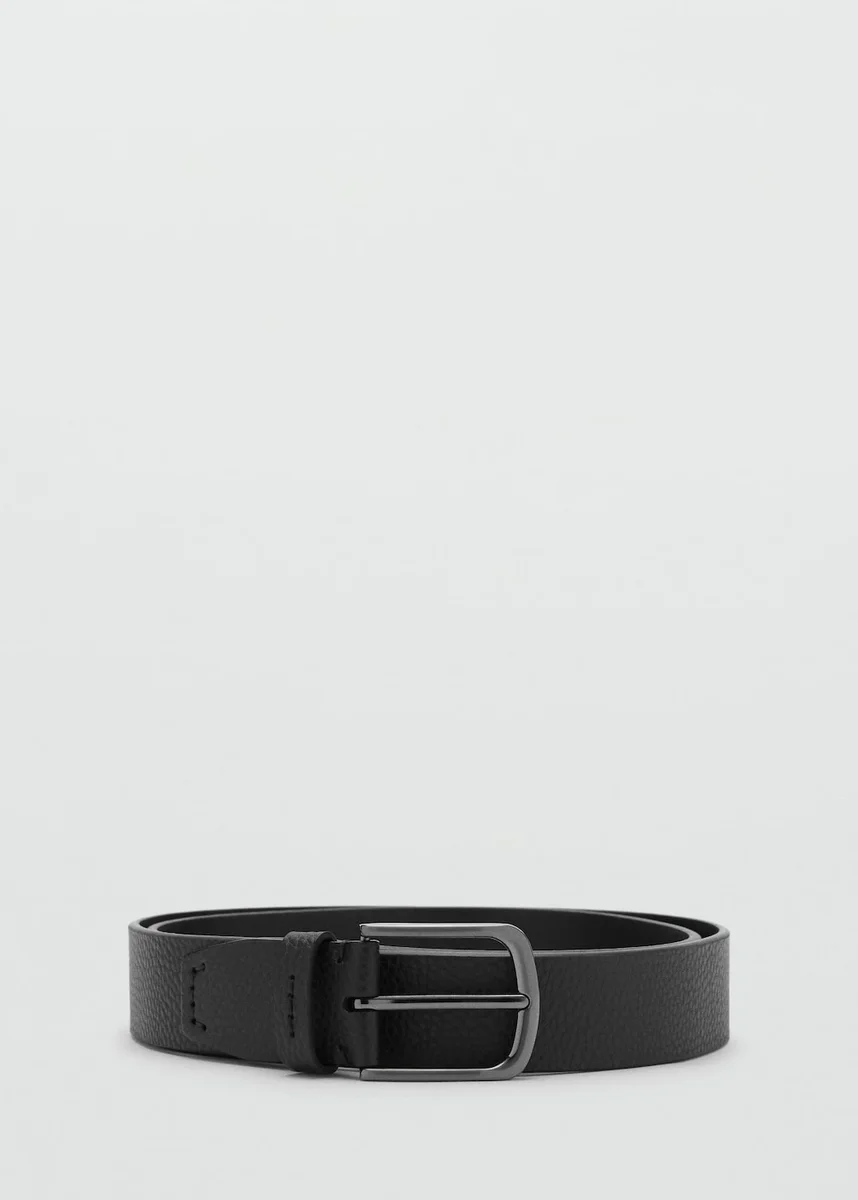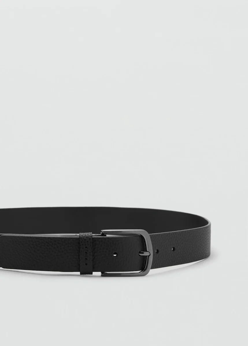 100% skóra bydlęca. Wnętrze z wykończeniem płomieniowanym. Metalowa klamra w tym samym kolorze. Perforacja umożliwiająca swobodną regulację rozmiaru w sklepach MANGO.