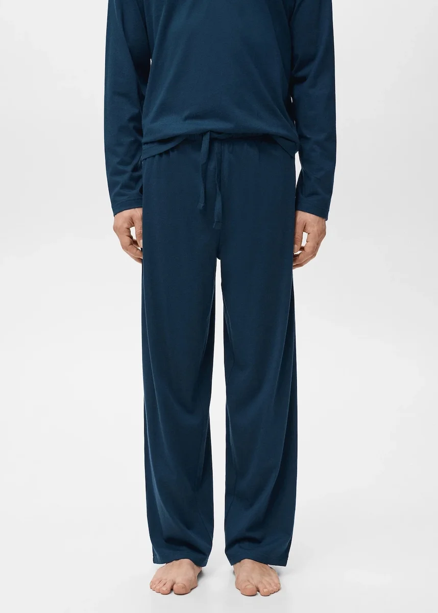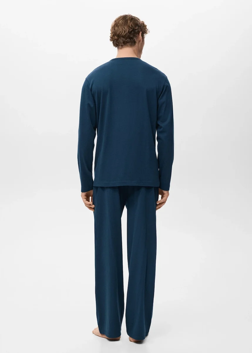 100% bawełna. Koszulka z długim rękawem i długie spodnie z elastycznym paskiem i regulowanym sznurkiem. W zestawie torba do przechowywania odzieży