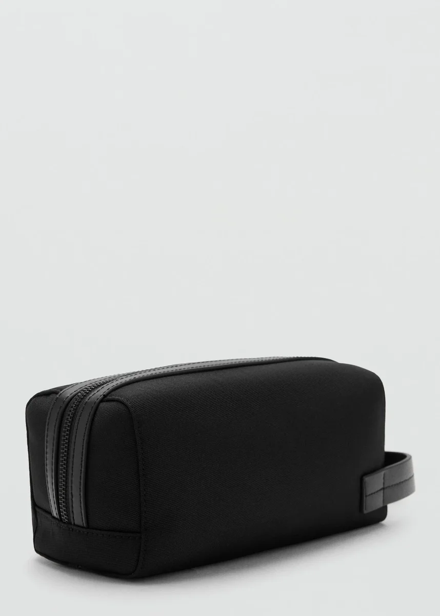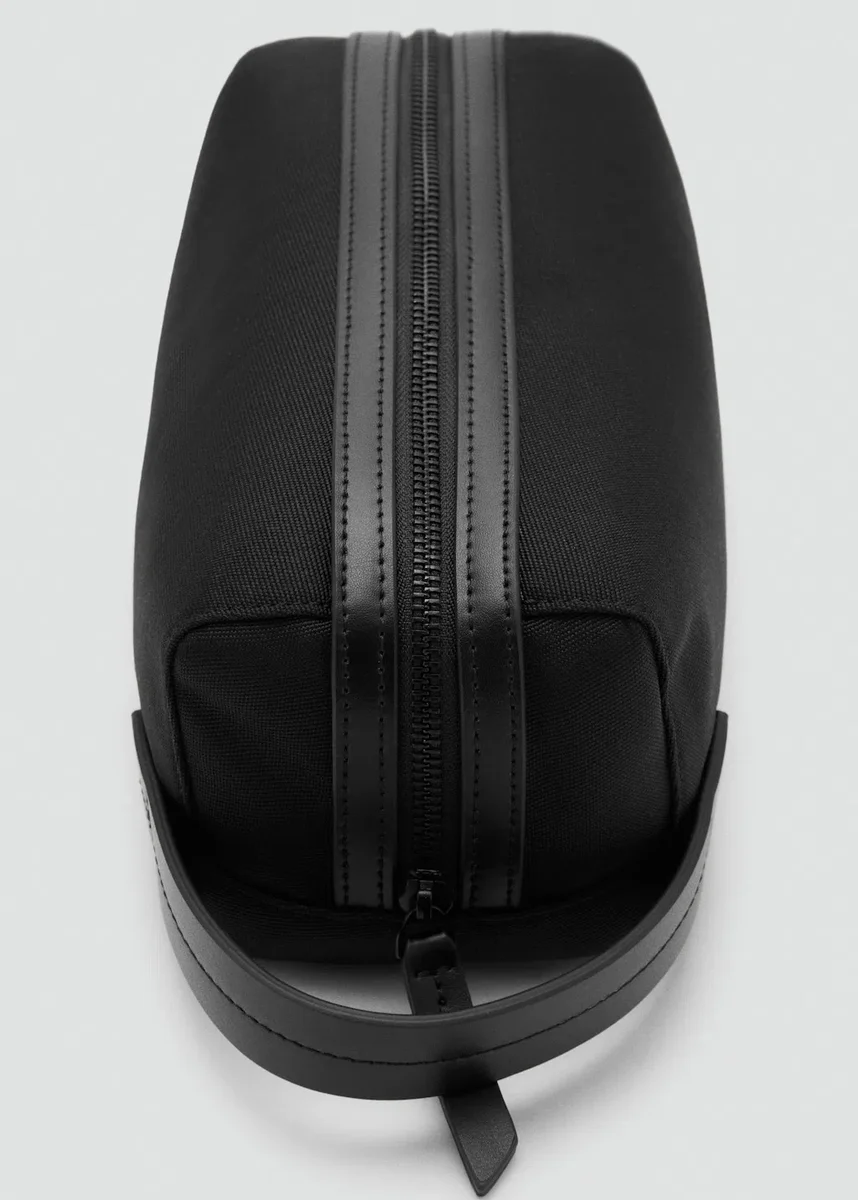 Skórzane detale. Zamknięcie na zamek błyskawiczny. Wewnętrzna kieszeń z zamknięciem na zamek błyskawiczny. Krótki uchwyt boczny. 8,66 x 4,33 x 4,33 cala (długość x wysokość x szerokość)
