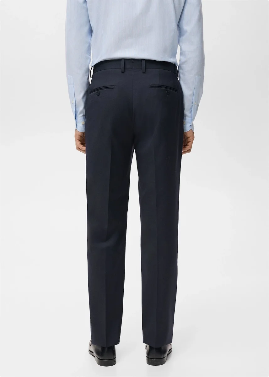 Krój slim fit. 100% wełna. Wyprasowane paski. Szlufki. Dwie kieszenie boczne. Dwie kieszenie z tyłu. Zapięcie z przodu na zamek błyskawiczny, haczyk i podwójny guzik.