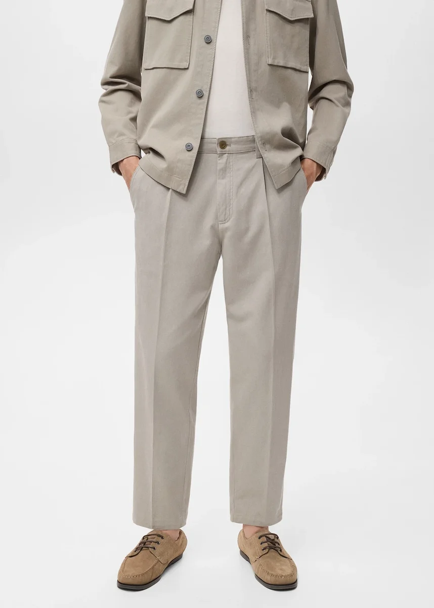 Bawełniane i lyocellowe spodnie z prostymi nogawkami i zakładkami