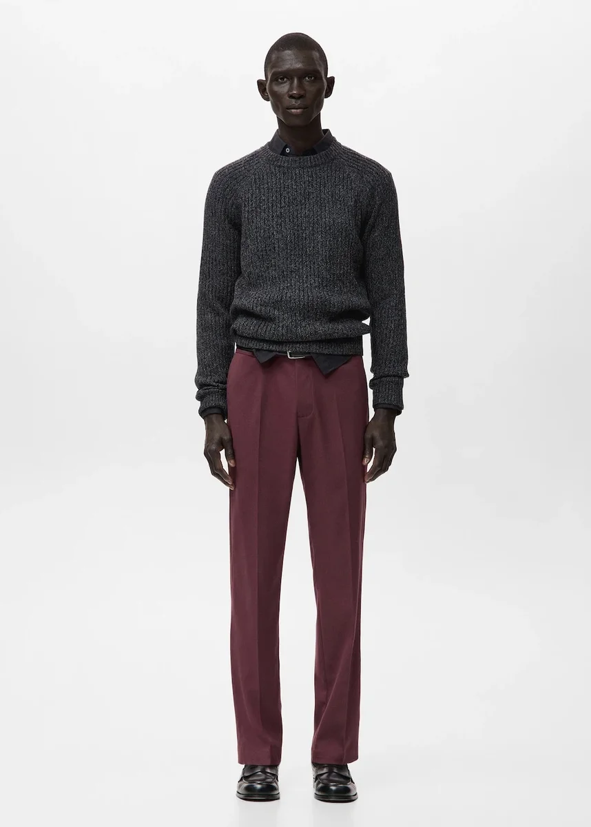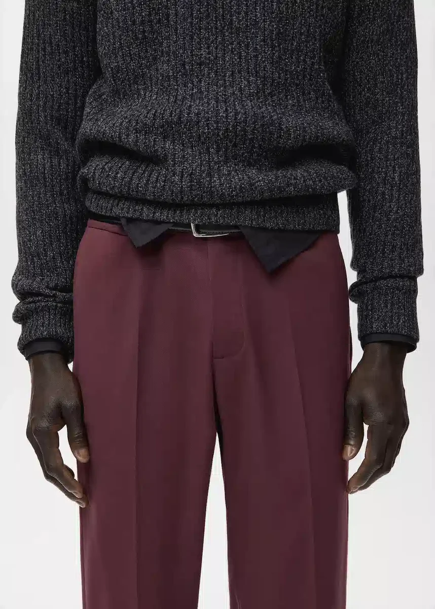 Regularny krój. Tkanina z mieszanki bawełny. Wyprasowane paski z przodu i z tyłu. Dwie kieszenie boczne. Dwie kieszenie z klapką i guzikiem z tyłu. Szlufki. Zapięcie na zamek błyskawiczny i guzik.