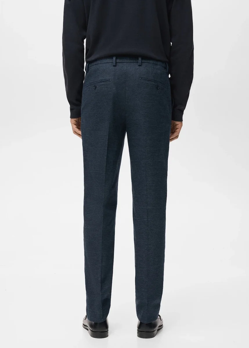 Slim fit. Miękka bawełniana flanela. Wyprasowane paski z przodu i z tyłu. Dwie kieszenie boczne. Dwie kieszenie z patką i guzikiem z tyłu. Szlufki. Zapięcie na zamek błyskawiczny i guzik