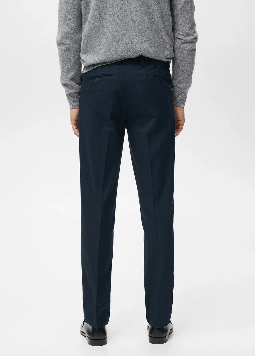 Slim fit. Miękka bawełniana flanela. Dwie kieszenie z przodu. Dwie kieszenie z tyłu zapinane na guzik. Wyprasowane paski z przodu i z tyłu. Szlufki. Zapięcie z przodu na guziki dwurzędowe i zamek błyskawiczny