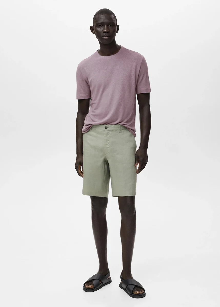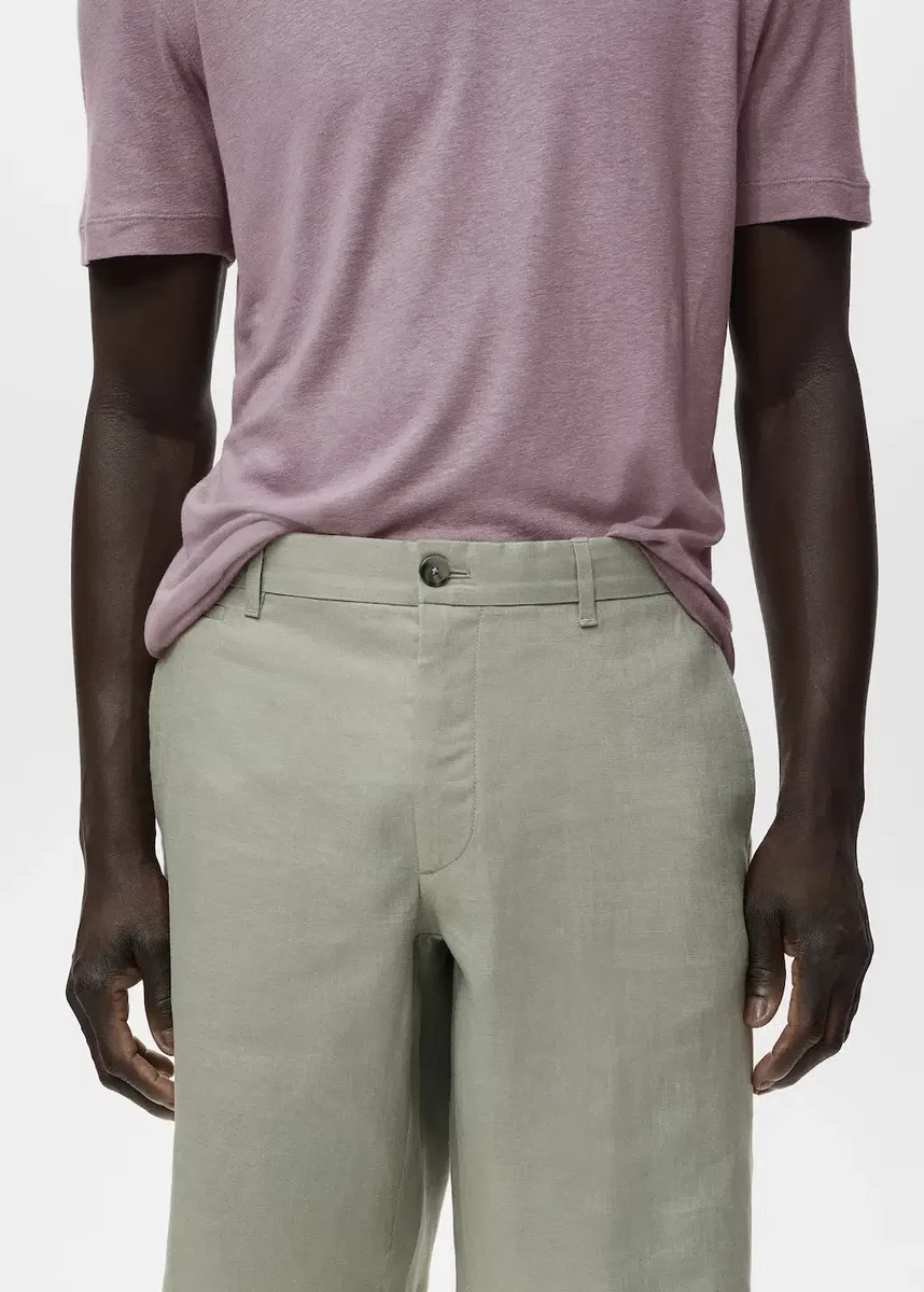 Krótkie spodenki slim fit, 100% len