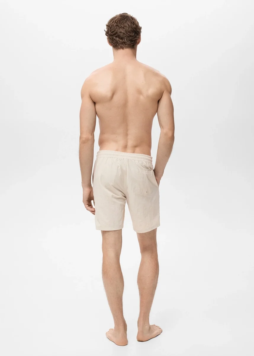 Typ bokserki. Elastyczny pas z regulowanym sznurkiem. Dwie kieszenie boczne. Naszywana kieszeń z tyłu z zapięciem na rzep. Małe rozcięcia po bokach u dołu. Produkt promocyjny