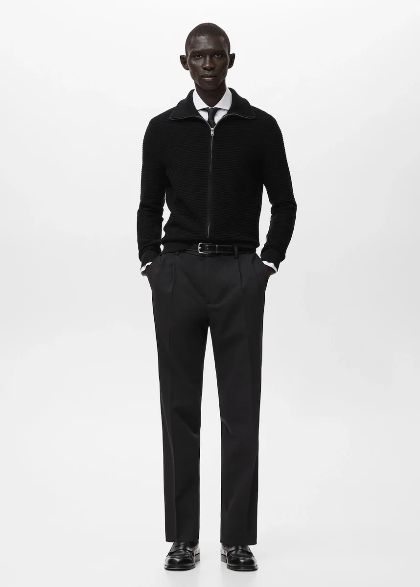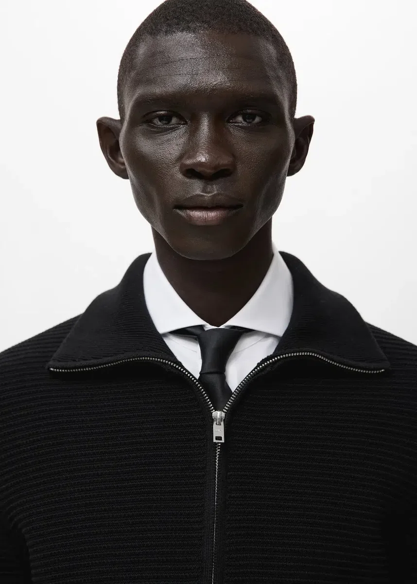 100% bawełna. Prosty krój. Strukturalna dzianina. Kołnierz z dzianiny warkoczowej. Długie rękawy z elastycznymi mankietami. Zamek błyskawiczny z przodu