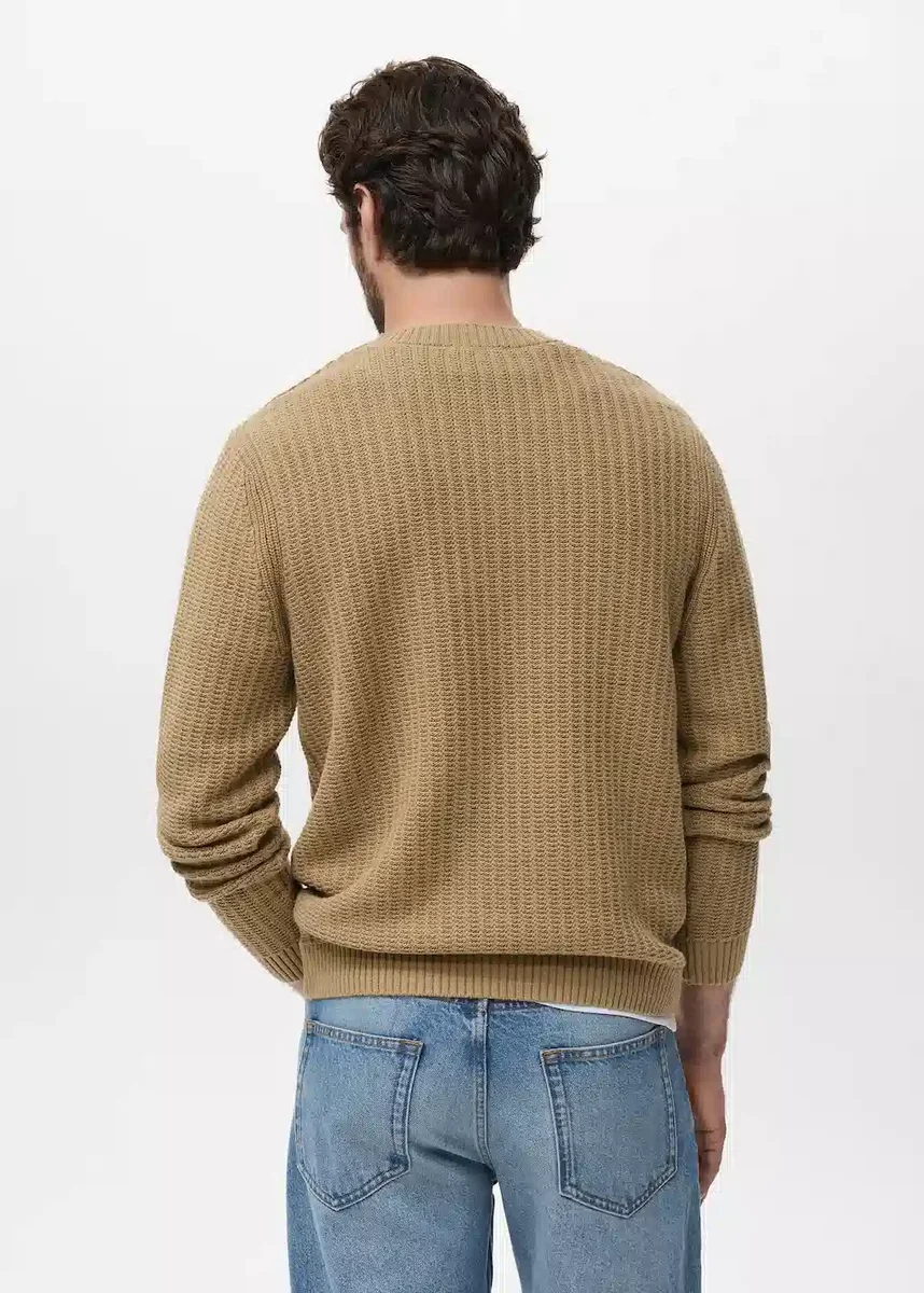 Krój regularny. 100% bawełna. Prążkowany wzór. Średnia długość. Długi rękaw. Okrągły dekolt