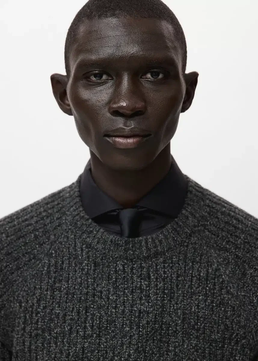 Mieszanka wełny. Prosty krój. Okrągły dekolt. Splot warkoczowy. Długie rękawy z elastycznymi mankietami. Zaokrąglony dół.