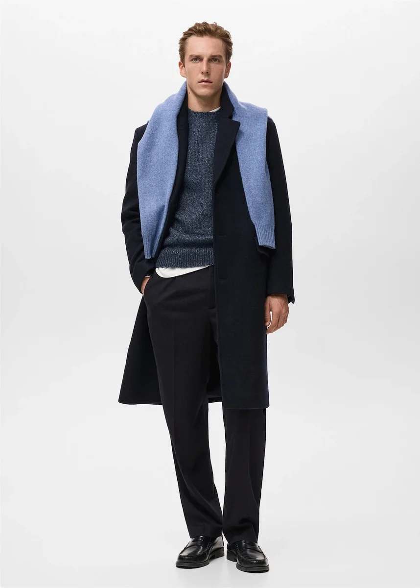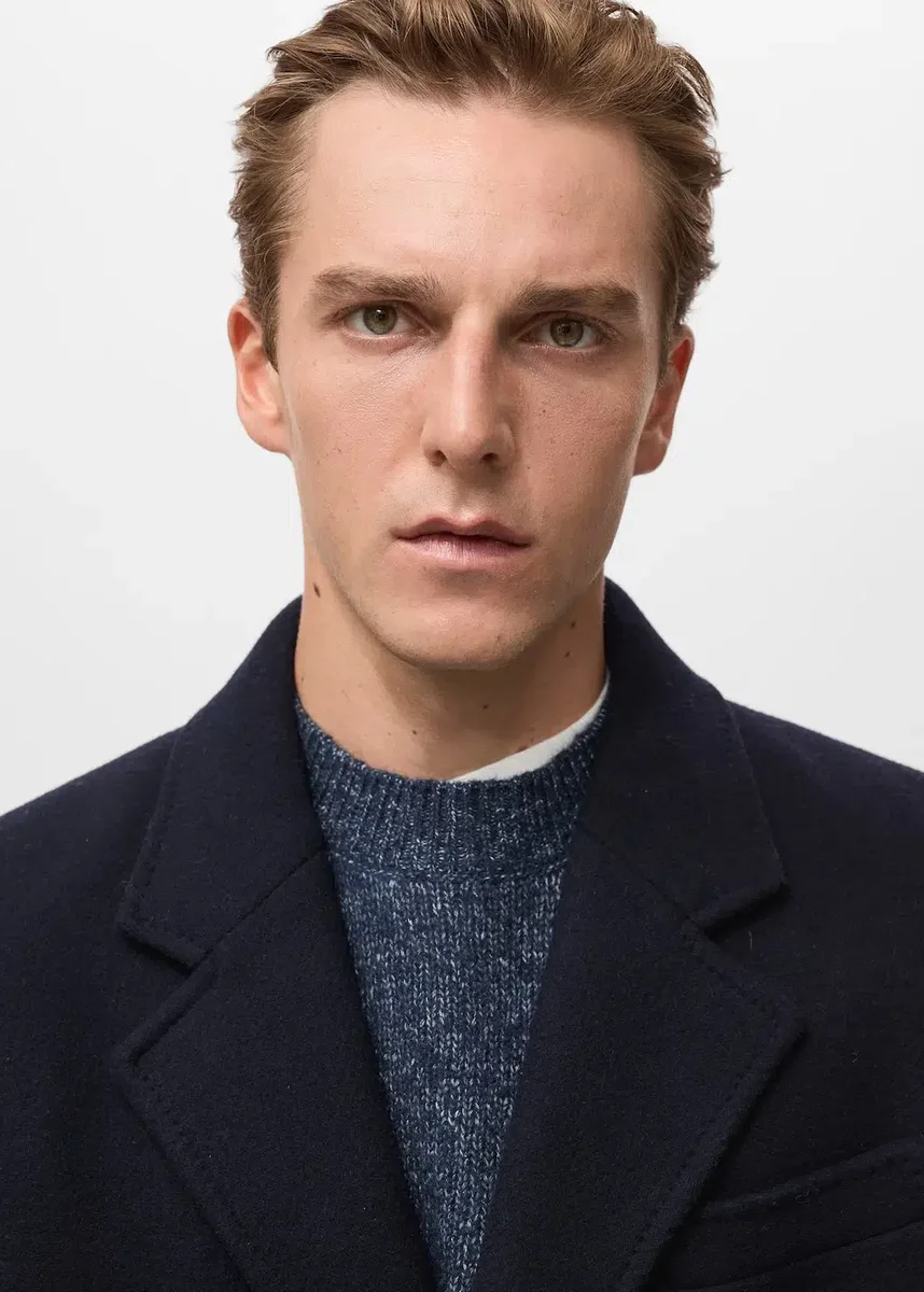 Mieszanka wełny. Długi fason. Kołnierz z wycięciem. Zapięcie na trzy guziki. Mankiety zapinane na guziki. Dwie kieszenie z klapką z przodu. Rozcięcie pośrodku dołu. Podszewka wewnętrzna