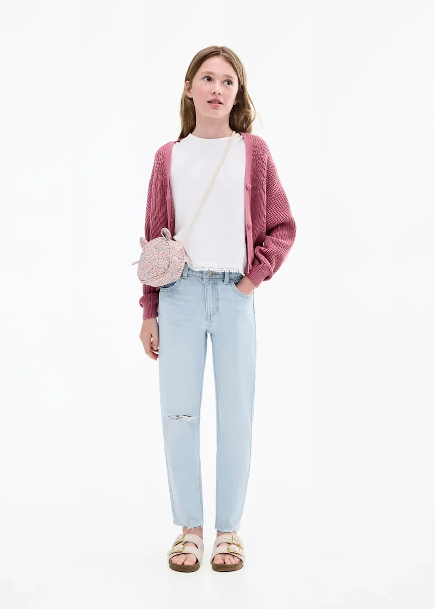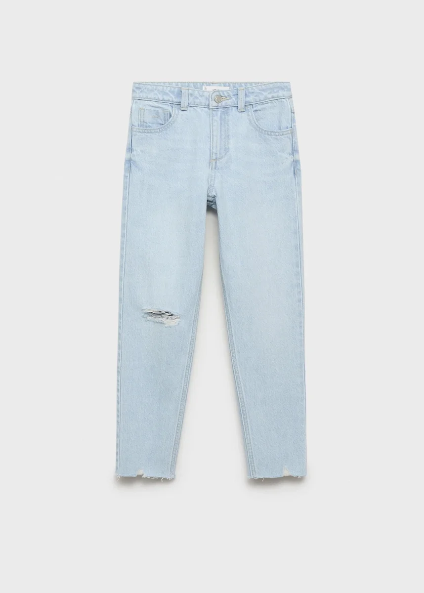 Dżinsy z ozdobnymi przetarciami w kroju mom fit