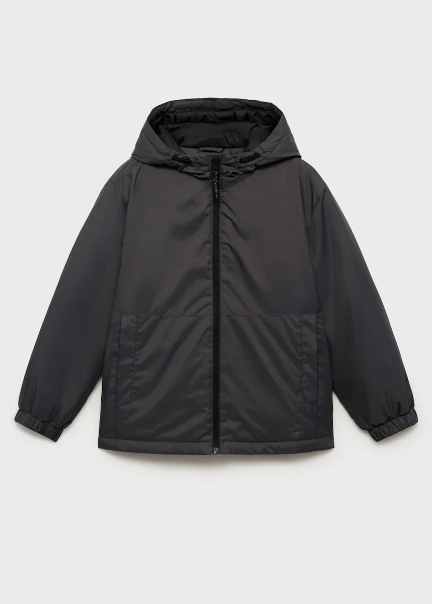 Wodoodporny materiał. Pikowana tkanina. Prosty krój. Z kapturem. Długie rękawy z elastycznymi mankietami. Zapięcie na zamek błyskawiczny. Dwie kieszenie boczne
